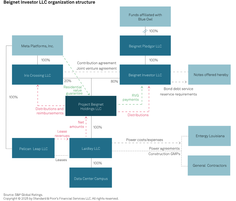 This deal represents a sophisticated blending of corporate finance, project finance, and structured credit techniques rarely seen in investment-grade markets. The complex structure creates bankruptcy-remote vehicles that isolate risk while leveraging Meta’s creditworthiness through lease guarantees rather than direct corporate obligations. What makes this particularly innovative is how it navigates accounting treatment—Meta achieves off-balance sheet treatment for what effectively functions as corporate debt, while bond investors receive what amounts to a quasi-asset-backed security with corporate credit enhancement. This structural creativity allows Meta to maintain financial flexibility while securing massive capital for critical infrastructure.